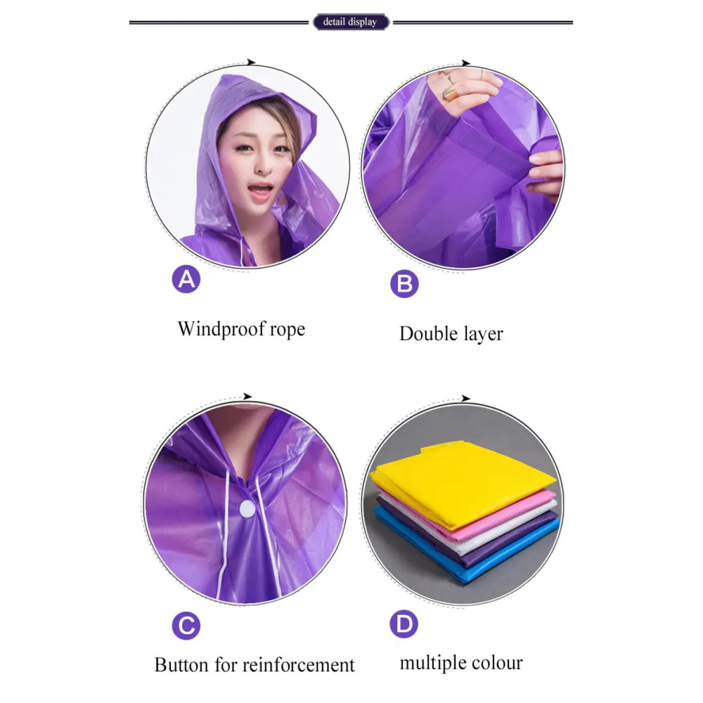 Универсальный дождевик — практичный и удобный способ защиты от дождя и ветра для взрослых. Изготовлен из толстого водонепроницаемого материала, который сохраняет влагу и защищает одежду. Легкий, компактный и универсальный, подходит как для мужчин, так и для женщин.