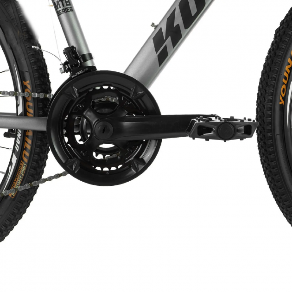 Педальный узел Konar KS-26″17 обладает хорошо продуманной конструкцией, обеспечивающей максимальное удобство и безопасность. Система шатунов оснащена пластиковой защитой, исключающей попадание частей одежды велосипедиста в цепь.