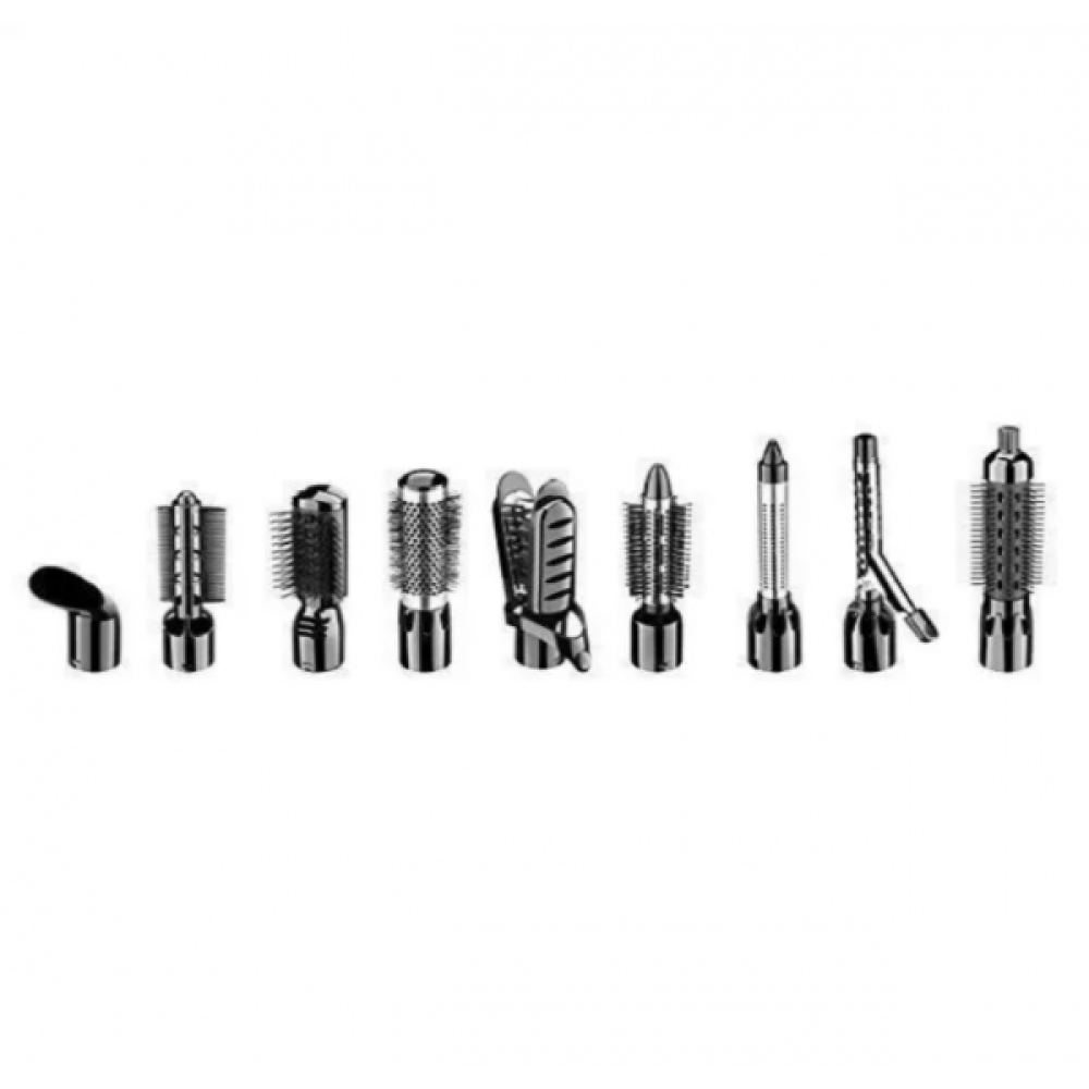 Данная модель имеет в комплекте 9 насадок для укладки волос:
