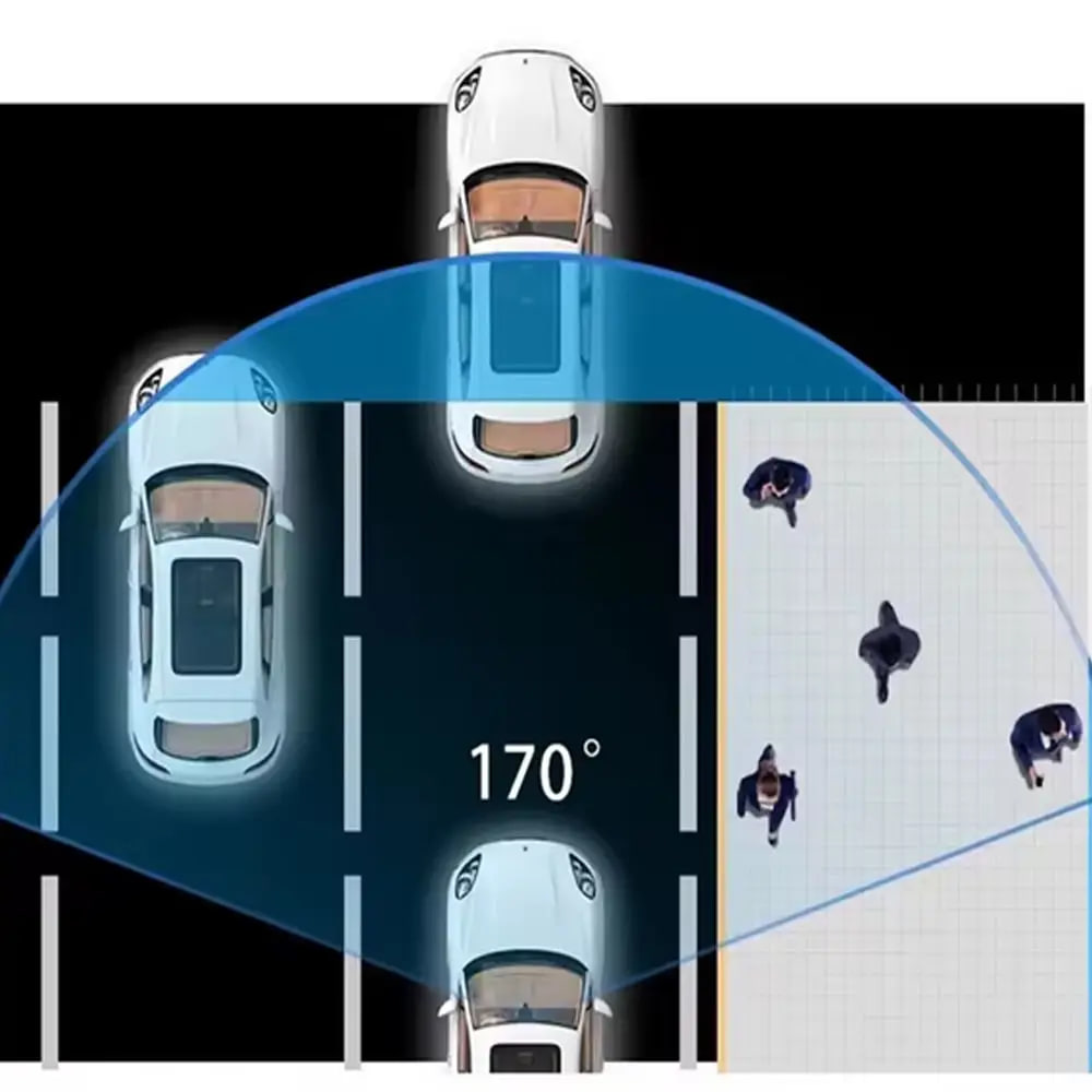 • Широкий угол обзора 170° для полного охвата дороги