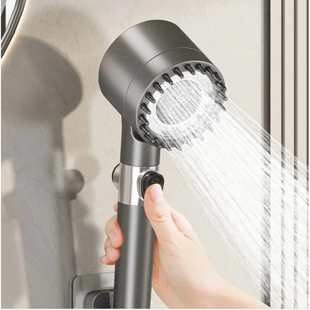 Интегрированные мягкие силиконовые шипы обеспечивают приятный массажный эффект, способствующий расслаблению мышц и уменьшению стресса. Три режима подачи воды, кнопка отключения, встроенный фильтр и гибкая головка делают это решение идеальным для спокойных и эффективных душевых процедур.