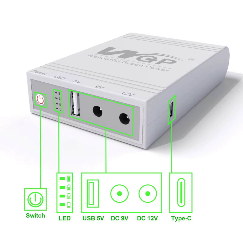 Источник бесперебойного питания UPS WGP-103 · ИБП для роутера 10400 mAh · Компактный ИБП для модема