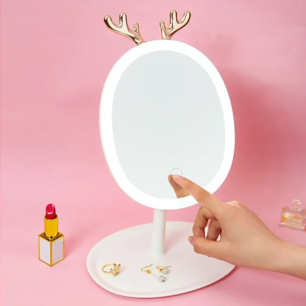 Зеркало косметическое для макияжа с LED подсветкой и держателем для бижутерии · Овальное настольное зеркало с USB зарядкой · 3 уровня яркости подсветки подойдет как для каждодневного макияжа, так и для процедур по уходу за кожей лица. Все потому, что этот удобный помощник для каждой девушки с LED подсветкой. Еще один плюс - питание от батареи, что исключает необходимость подсоединения устройства к сети. Есть 3 уровня яркости с которыми вам будет везде удобно и комфортно наводить красоту!