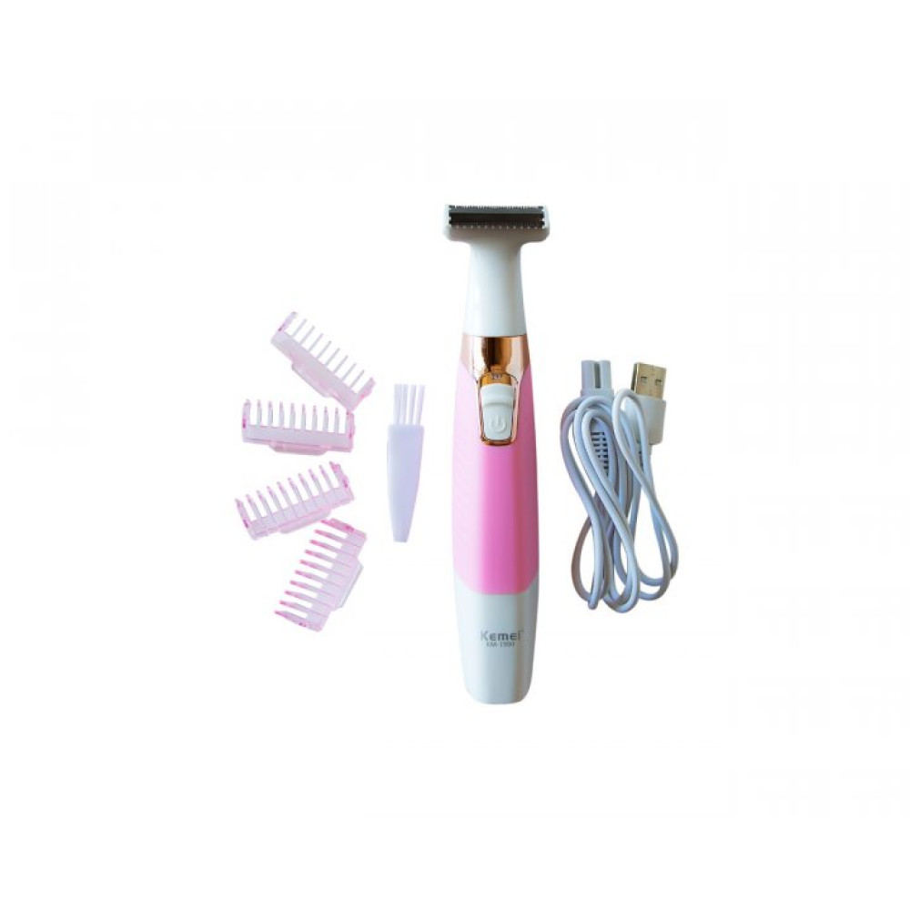 Женский беспроводной триммер – бритва для удаления волос на теле, лице, в зоне бикини Kemei KM-1900 с насадками